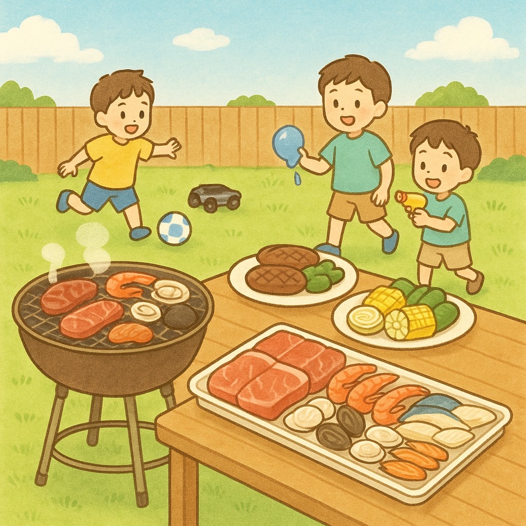 息子と甥っ子はボール遊びに水風船、水てっぽう、そしてラジコンと、にぎやかに遊びまわっていました。楽しそうな笑い声がずっと響いていて、大人も自然と笑顔に😊